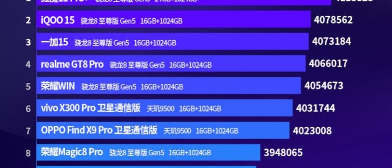 Речь идет об устройствах под управлением операционной системы Android. Первое место у REDMAGIC 11 Pro+, флагмана на базе Snapdragon 8 Elite Gen 5 с СЖО. Смартфон набрал свыше 4,1…