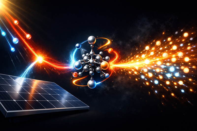 Идею проработали исследователи из Университета Кюсю (Kyushu University) в сотрудничестве с Университетом Йоханнеса Гутенберга (Johannes Gutenberg University) из Германии. В классическом фотоэлементе один поглощённый фотон создаёт в полупроводнике один экситон (электрон и дырку). Фотон — это один квант света (минимально возможная единица энергии электромагнитного излучения данной длины волны). Он не может создать больше одного электрона. Эта энергия поглощается электроном и переводит его в возбуждённое состояние, отправляя путешествовать по материалу в виде электрического тока.