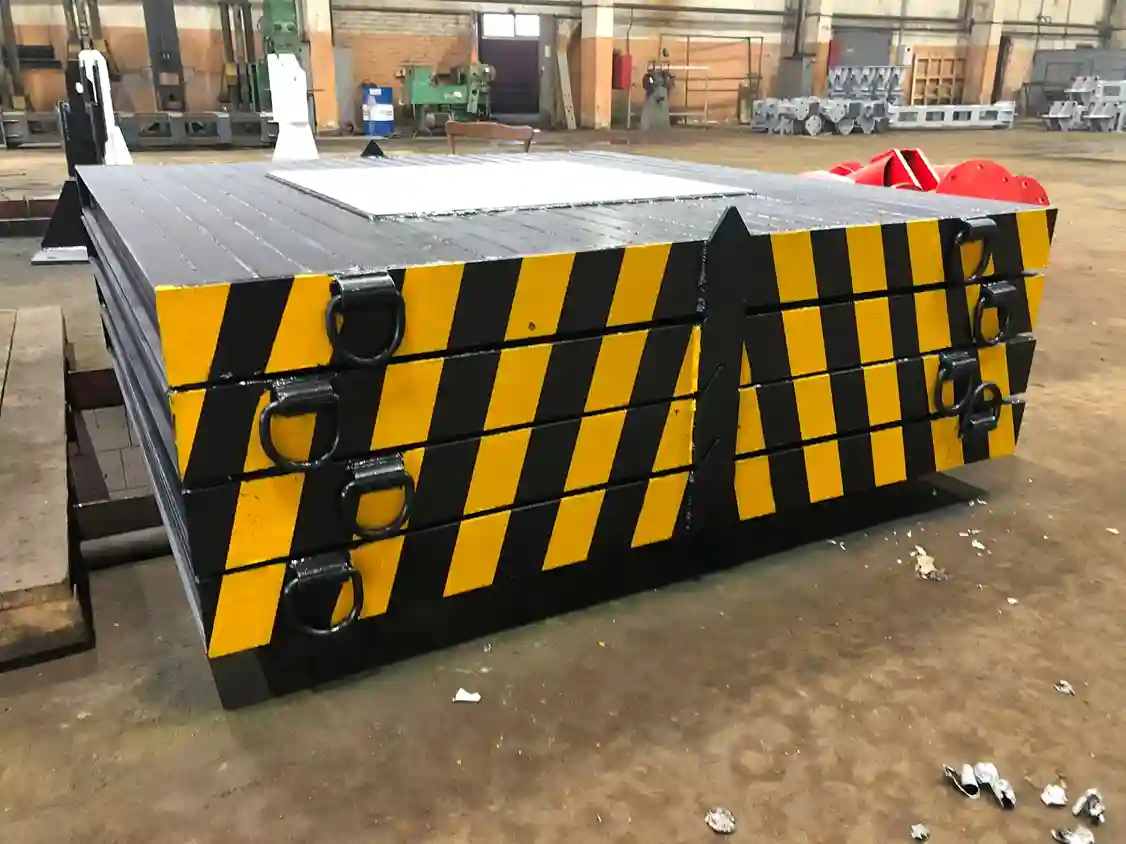 - Дорожные плиты (переходные плиты): Крупноформатные железобетонные или композитные плиты, используемые для создания временной дороги или рабочей площадки под тяжелую технику, а также в качестве усиленной основы под аутригеры на очень слабых грунтах.