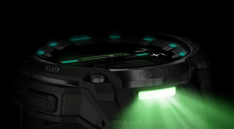 Ещё один плюс Garmin Instinct Crossover Tactical Edition — встроенный светодиодный модуль с зелёным фонариком, что отличает его от стандартных моделей линейки.